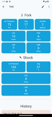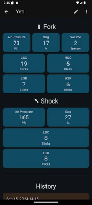 Features: * Multiple setups (e.g. one per bike) * Fork and Shock settings * Dark Mode * No network, account, ads