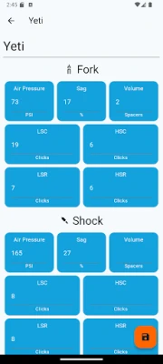 Features: * Multiple setups (e.g. one per bike) * Fork and Shock settings * Dark Mode * No network, account, ads